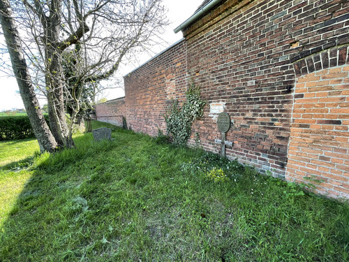 Auf dem Friedhof in Zehbitz befindet sich rechts an der Mauer das Grab eines unbekannten tschechischen Zwangsarbeiters.