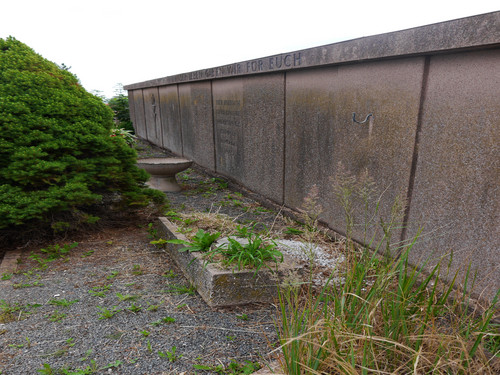 Hinter der Grabstätte befindet sich eine Mauer mit der Inschrift: