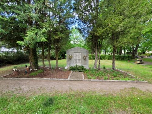 Im Zentrum der Kriegsgräberanlage steht die letzte Ruhestätte für 22 am 07.04.1945 Verstorbene – unter ihnen 14 Frauen.