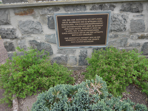 Die Einweihung der Anlage erfolgte 1967. Wie an einer Reihe von Gräbern von Toten der Todesmärsche (vgl. z. B. Hottendorf, Wannefeld, Berge, Mieste) sind die einzelnen Gräber durch Tafeln aus Kunststein mit einem roten Winkel, dem Erkennungszeichen für die politischen Häftlinge in den Konzentrationslagern, gekennzeichnet. Dieses Zeichen war das Symbol für die Vereinigung der Verfolgten des Naziregimes (VVN) in der DDR.