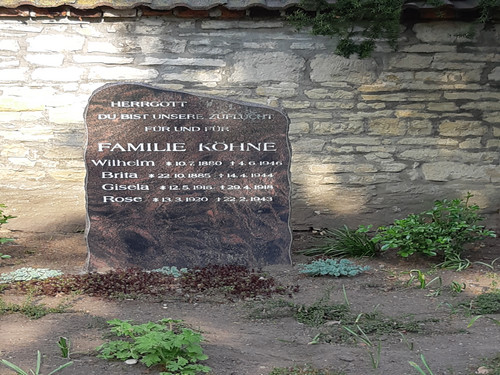 Auf dem Friedhof am Elsenberg in Brumby ist an der Mauer eine namentlich bekannte deutsche Frau bestattet, die am 22.02.1943 gestorben ist.