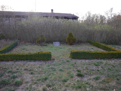 Die Namen und Lebensdaten der Verstorbenen sowie der Hinweis auf die zwei unbekannten Soldaten sind einer schräg auf dem Erdboden liegenden Tafel zu entnehmen.