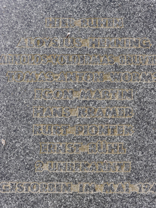 Weiterhin haben hier in einem Sammelgrab sieben namentlich bekannte und zwei unbekannte Kriegstote unbekannter Nationalität ihre letzte Ruhestätte gefunden. Sie verstarben 1945 bzw. mit unbekanntem Datum.